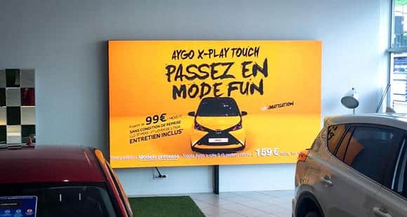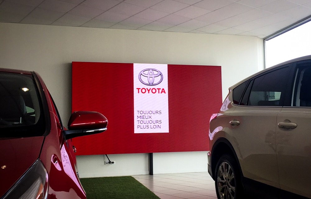 L’écran LED est situé dans le showroom de Toyota Toys Motors à Rouen.