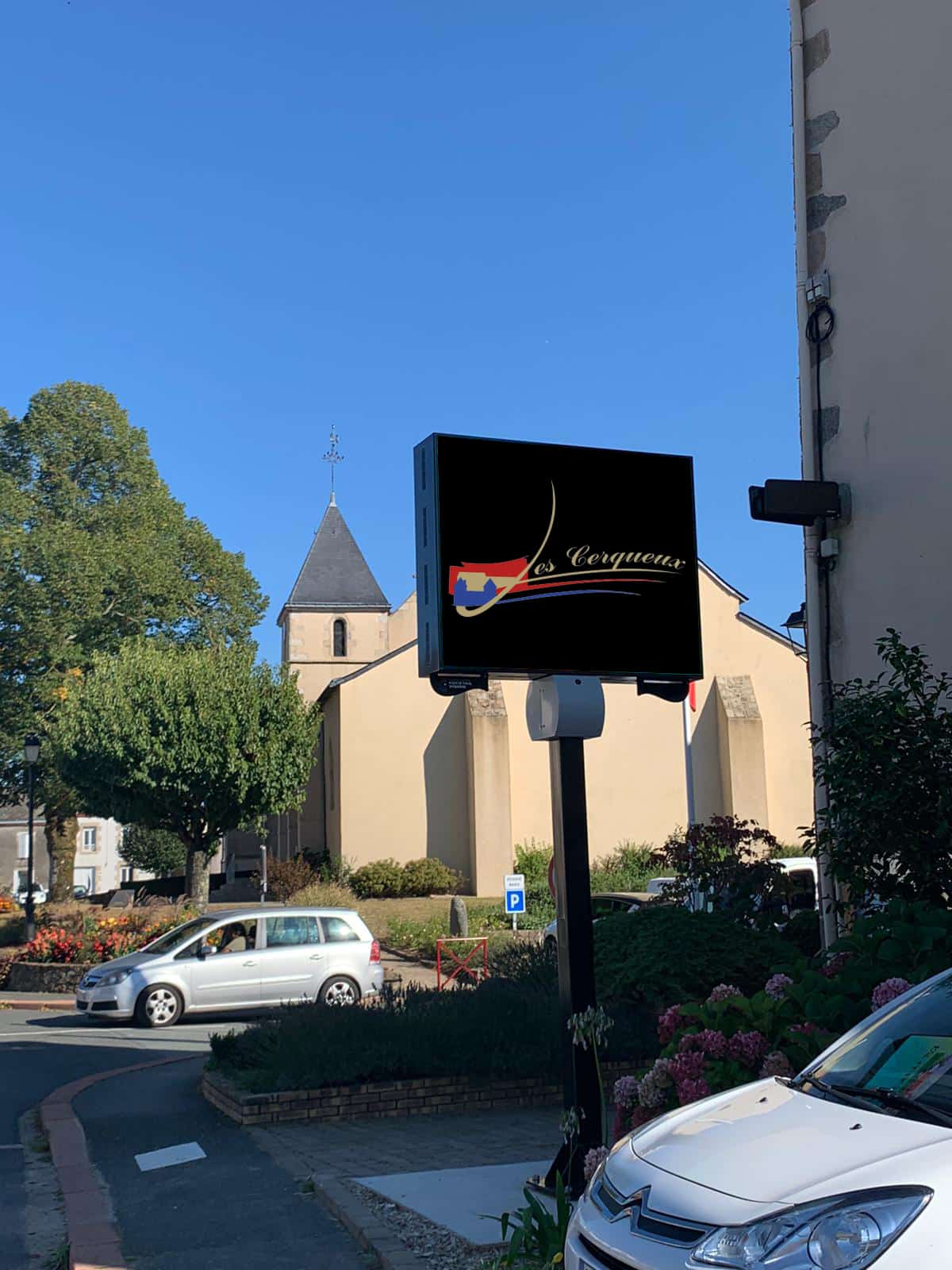 La commune des Cerqueux, située dans le Maine et Loire, a fait appel au savoir-faire et à la qualité du travail de Cocktail Vision pour s’équiper d’un panneau numérique d’information municipale double-face de 2 m2 par face en définition d’un pitch de 6mm.