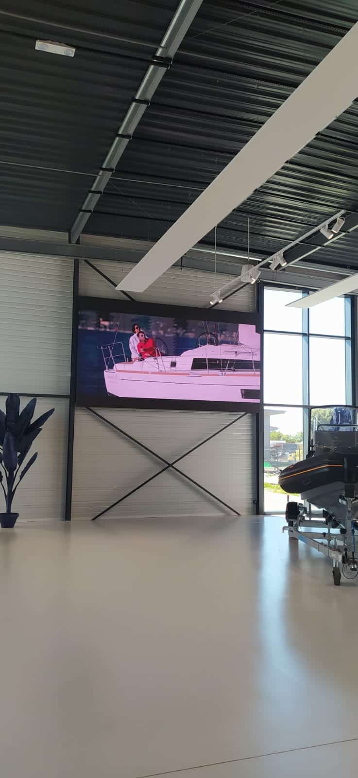Le groupe RCM, qui s’équipe déjà de panneaux LED Cocktail Vision pour des concessions automobiles, a fait le choix de cet écran de 13,75 m2 en définition d’un pitch très fin de 2,5 mm pour équiper et dynamiser le siège de sa nouvelle activité RC Marine, situé à Saint Gilles Croix de Vie.